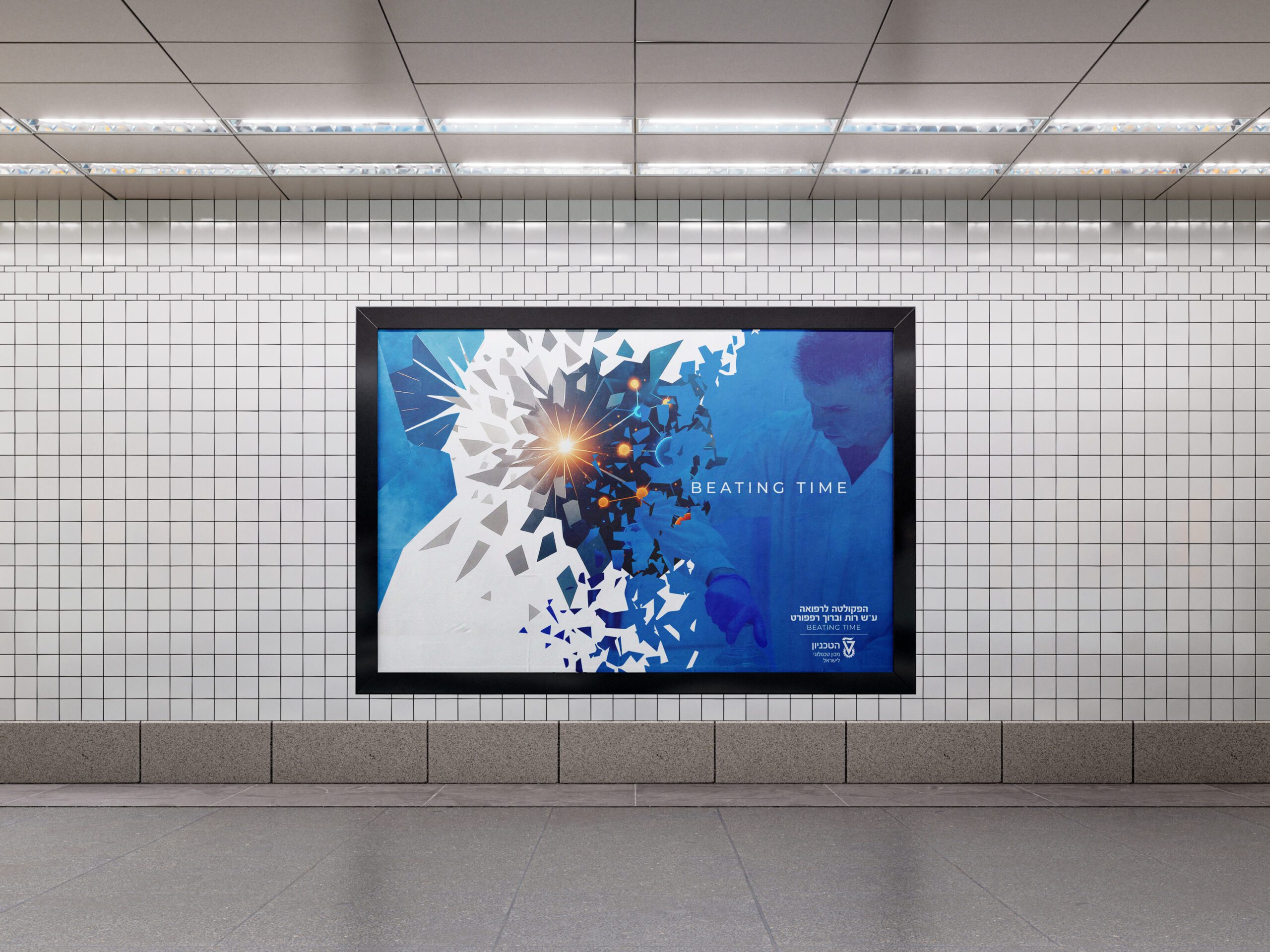 אלמנט גרפי של חלקיקים בתנועה המדמה מסע אל עתיד אפשרי, לצד דימויים חמים של הקהילה בקמפוס ובשכונת בת גלים, יוצרים את הרפואה החדשה וממקמים את הפקולטה לרפואה של הטכניון כמי שמעצבת את הרפואה של מחר.